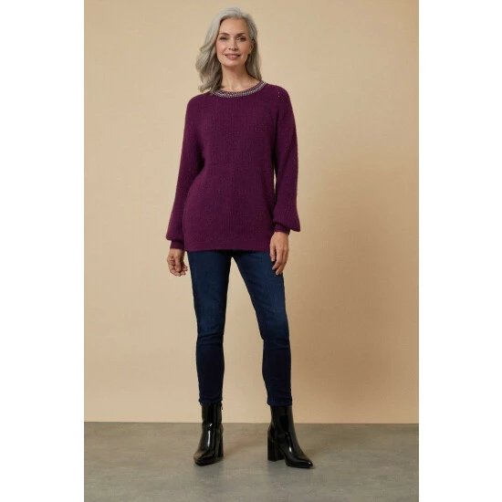 Our on-trend collection of jumpers & cardigans has everything you need for the season ahead. Keep things cosy with chunky knitted designs, or throw on a light layer with our versatile cardigans. From timeless shrugs and longline pieces, to cosy boleros and coatigans we’ve got you covered. Style: Beaded Necklace JumperIdeal for: Occasion