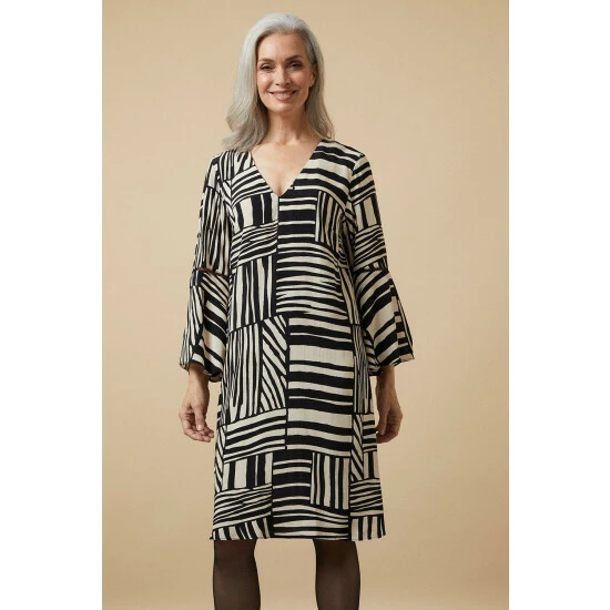 Black And White Printed Shift Dress