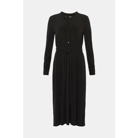 Black Jersey Belted Shirt Dress