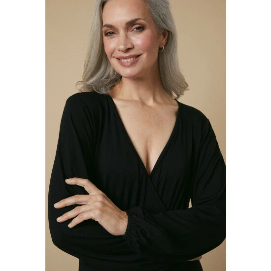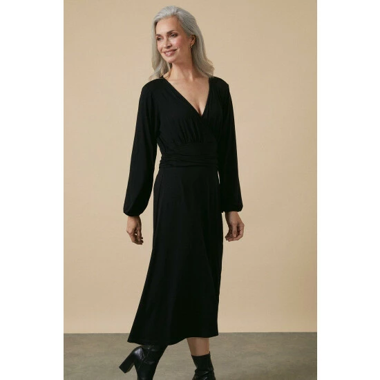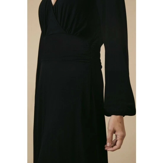 Black Jersey Gathered Waist Dress