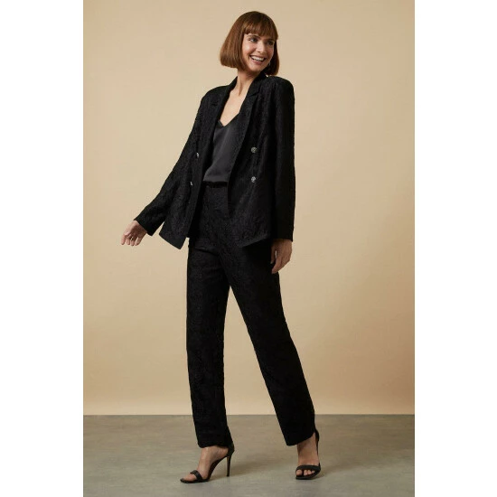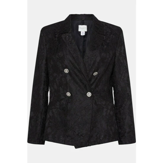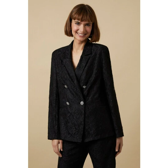 Part of W, a carefully curated collection of luxe, trend-lead pieces. W is an elevated selection of essential styles. Intricate lace detailing and statement diamante buttons add glamour to any look. Style with our matching lace trousers and strappy heels for a finishing touch.Style: Black Lace BlazerLength: Approx. 71cmFit: RegularIdeal for: SmartDesign: Lace