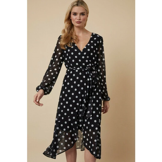 Just say dress. From sophisticated workwear styles to show stopping event-ready designs, our new season dresses have you covered for any and all occasions. Discover unique prints, elegant silhouettes and versatile styles. Whatever you’ve got in the diary, we’ve got the dress for it. Shop versatile Midi dresses, elegant Maxi dresses and everything in between.Style: Black Spot Mesh Wrap Belted Jersey DressIdeal for: Daywear