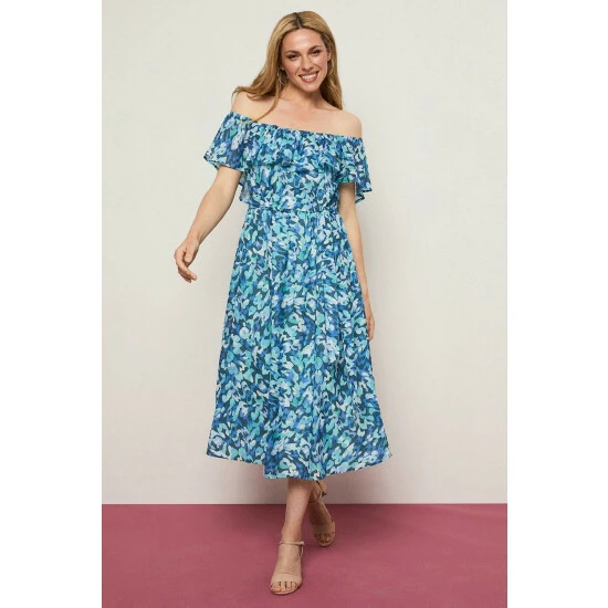 Just say dress. From sophisticated workwear styles to show stopping event-ready designs, our new season dresses have you covered for any and all occasions. Discover unique prints, elegant silhouettes and versatile styles. Whatever you’ve got in the diary, we’ve got the dress for it. Shop versatile Midi dresses, elegant Maxi dresses and everything in between.Style: Blue Abstract Off-shoulder DressLength: Approx. 122cmFit: RegularIdeal for: OccasionDesign: All Over Print