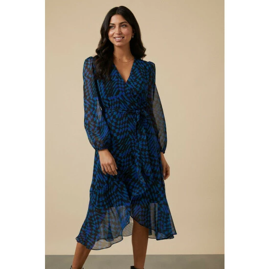 Just say dress. From sophisticated workwear styles to show stopping event-ready designs, our new season dresses have you covered for any and all occasions. Discover unique prints, elegant silhouettes and versatile styles. Whatever you’ve got in the diary, we’ve got the dress for it. Shop versatile Midi dresses, elegant Maxi dresses and everything in between.Style: Blue Geometric Belted Wrap DressLength: Approx. 121cmFit: RegularIdeal for: DaywearDesign: Belted