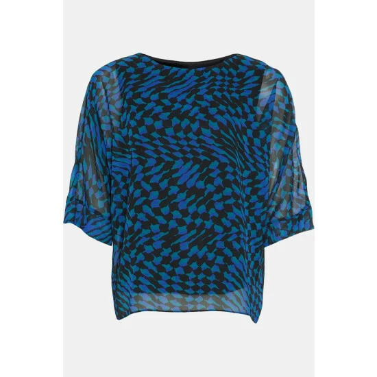 Complete the look with our new season tops. From casual camis to smart office tops to glam ruffled evening styles, we’ve got you covered for whatever you have in the diary. Make a style statement with puff sleeves and bold prints, or keep things classic with a chic cami or ruffles top. Intricate embellishments and fine prints are set to bring your everyday wardrobe to life, whilst a variety of fits are designed to flatter.Style: Blue Geometric Overlayer TopIdeal for: Daywear