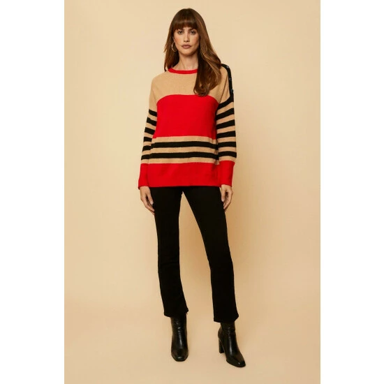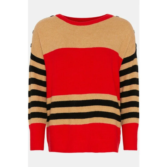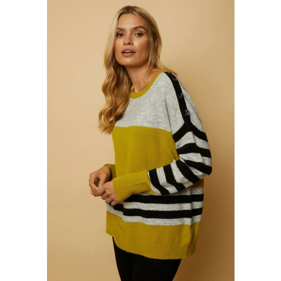 Button Shoulder Cosy Stripe Crew Neck Jumper