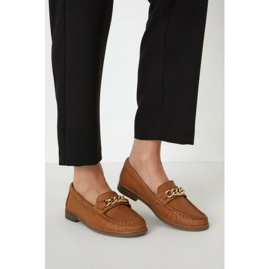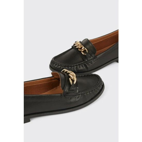 The leather Briana loafer features a comfort insole, raw edge upper detailing and a gold chain snaffle. Upper: Leather, Lining: Leather, Outsole: Synthetic