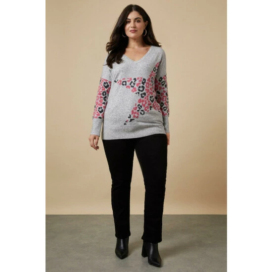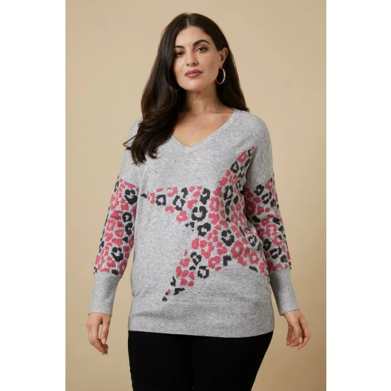 Our on-trend collection of jumpers & cardigans has everything you need for the season ahead. Keep things cosy with chunky knitted designs, or throw on a light layer with our versatile cardigans. From timeless shrugs and longline pieces, to cosy boleros and coatigans we’ve got you covered. Style: Curve Animal Star Crew Neck JumperIdeal for: Daywear