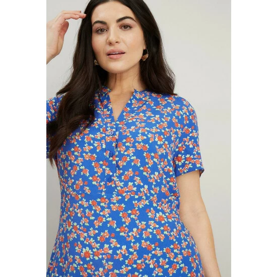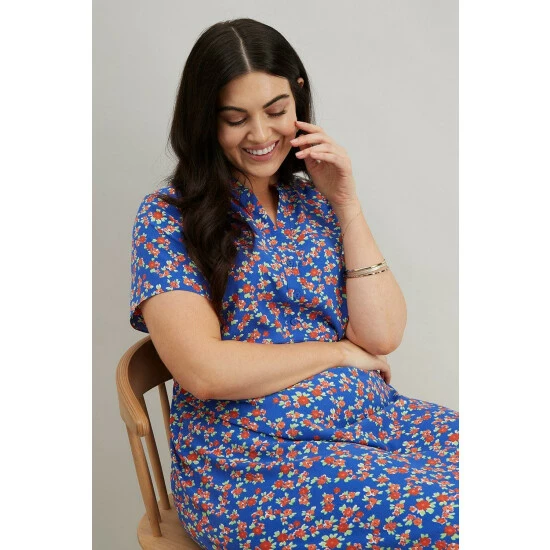 Curve Blue Floral Shirt Dress