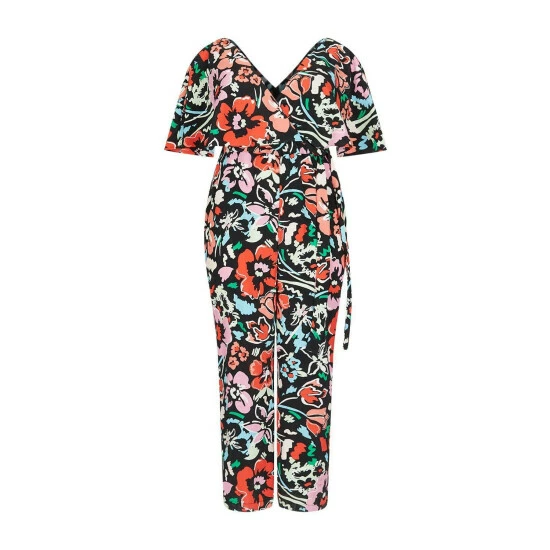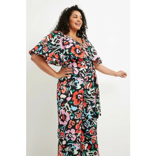 Curve Floral Flutter Sleeve Jumpsuit