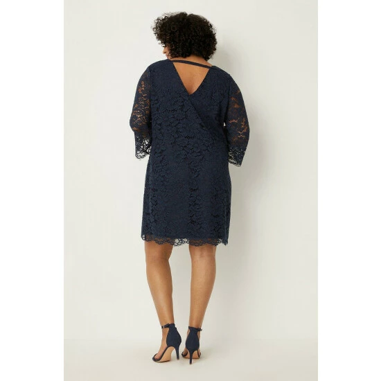 Curve Lace 3/4 Sleeve Shift Dress