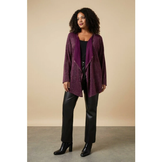 Our on-trend collection of jumpers & cardigans has everything you need for the season ahead. Keep things cosy with chunky knitted designs, or throw on a light layer with our versatile cardigans. From timeless shrugs and longline pieces, to cosy boleros and coatigans we’ve got you covered. Style: Curve Metallic Waterfall CardiganIdeal for: Occasion