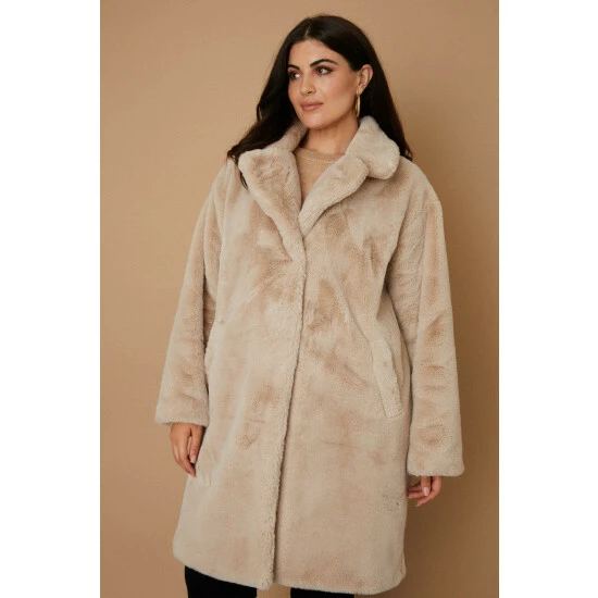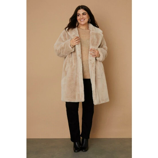 Faux Fur 1: 100% Polyester, Fur backing: 100% Polyester, Lining 100% Polyester, Model wears size 18.