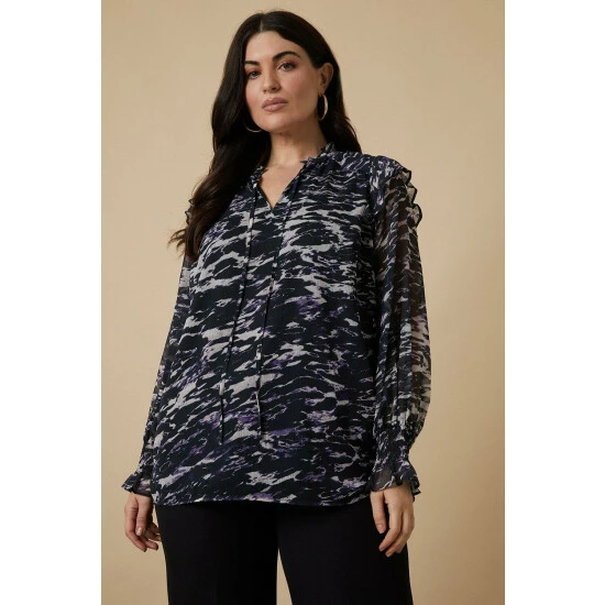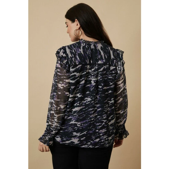 Curve Pink Abstract Shirred Detail Blouse