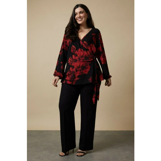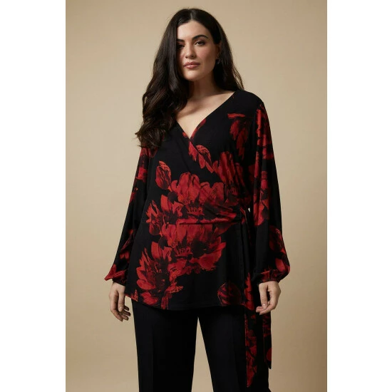 Complete the look with our new season tops. From casual camis to smart office tops to glam ruffled evening styles, we’ve got you covered for whatever you have in the diary. Make a style statement with puff sleeves and bold prints, or keep things classic with a chic cami or ruffles top. Intricate embellishments and fine prints are set to bring your everyday wardrobe to life, whilst a variety of fits are designed to flatter.Style: Curve Red Floral Jersey Wrap TopIdeal for: Daywear