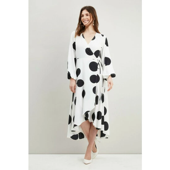 Just say dress. From sophisticated workwear styles to show stopping event-ready designs, our new season dresses have you covered for any and all occasions. Discover unique prints, elegant silhouettes and versatile styles. Whatever you’ve got in the diary, we’ve got the dress for it. Shop versatile Midi dresses, elegant Maxi dresses and everything in between.Style: Giant Spot Tiered Wrap DressLength: Approx. 102cmFit: RegularIdeal for: DaywearDesign: Wrap