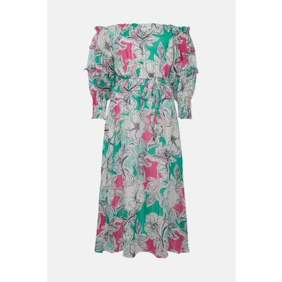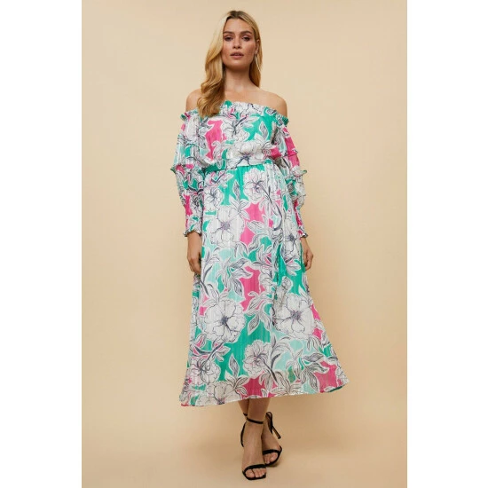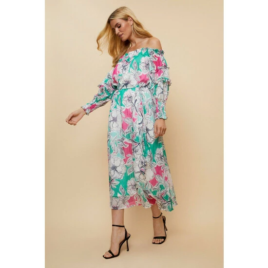 Just say dress. From sophisticated workwear styles to show stopping event-ready designs, our new season dresses have you covered for any and all occasions. Discover unique prints, elegant silhouettes and versatile styles. Whatever you’ve got in the diary, we’ve got the dress for it. Shop versatile Midi dresses, elegant Maxi dresses and everything in between.Style: Green And Pink Floral Off Shoulder DressLength: Approx. 126cmFit: RegularIdeal for: OccasionDesign: Belted