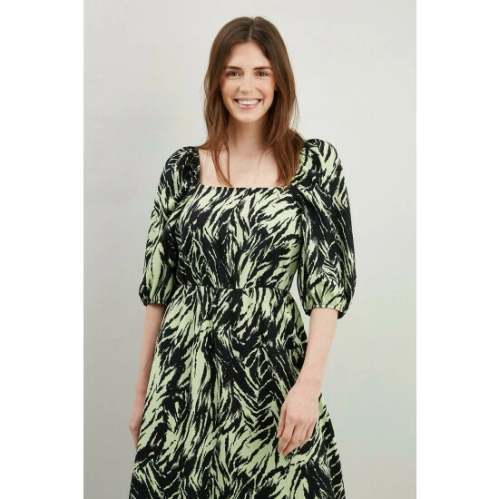 Just say dress. From sophisticated workwear styles to show stopping event-ready designs, our new season dresses have you covered for any and all occasions. Discover unique prints, elegant silhouettes and versatile styles. Whatever you’ve got in the diary, we’ve got the dress for it. Shop versatile Midi dresses, elegant Maxi dresses and everything in between.Style: Green Zebra Square Neck Midi DressLength: Approx. 107cmFit: RegularIdeal for: DaywearDesign: Puff Sleeve