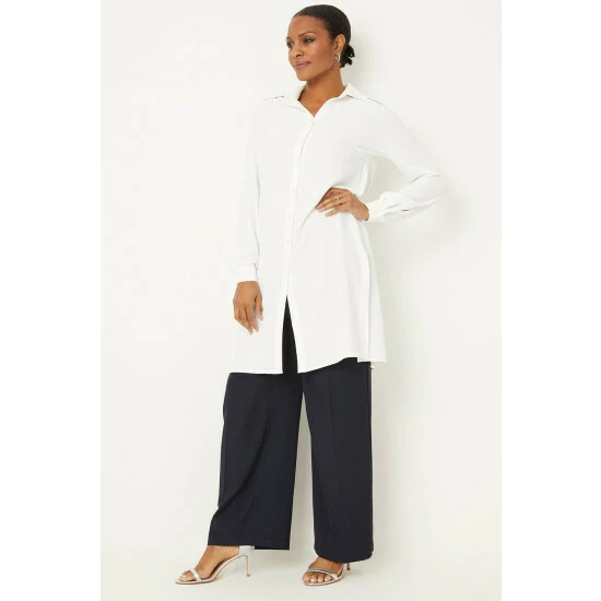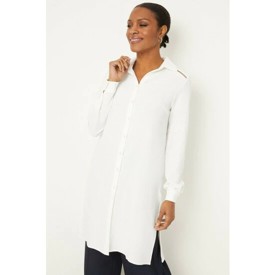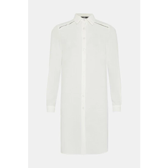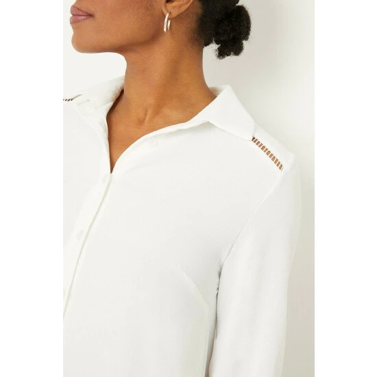 Ivory Longline Lace Trim Detail Shirt