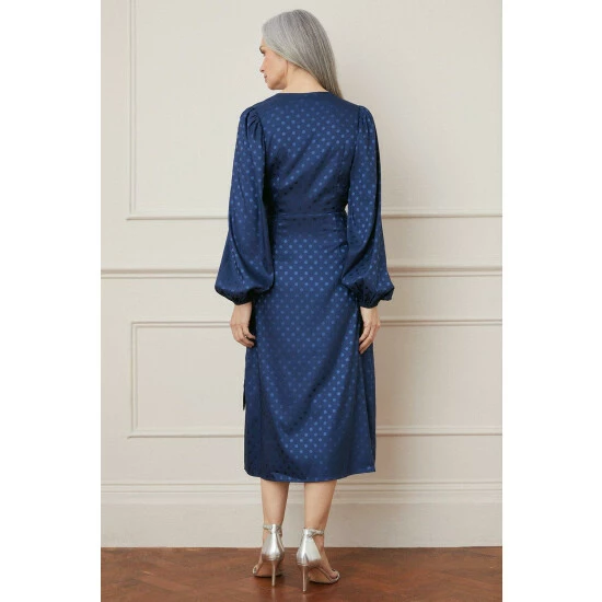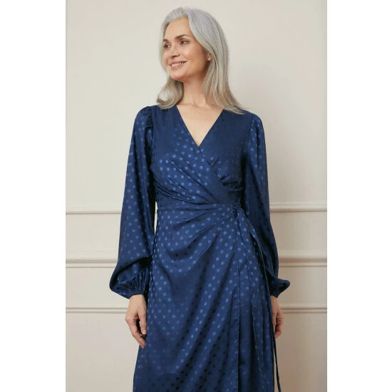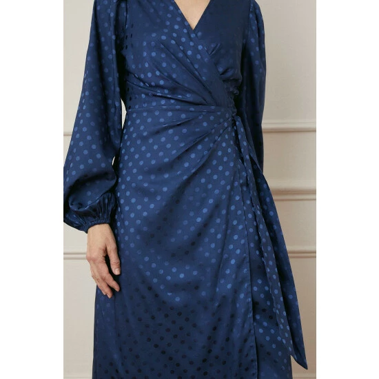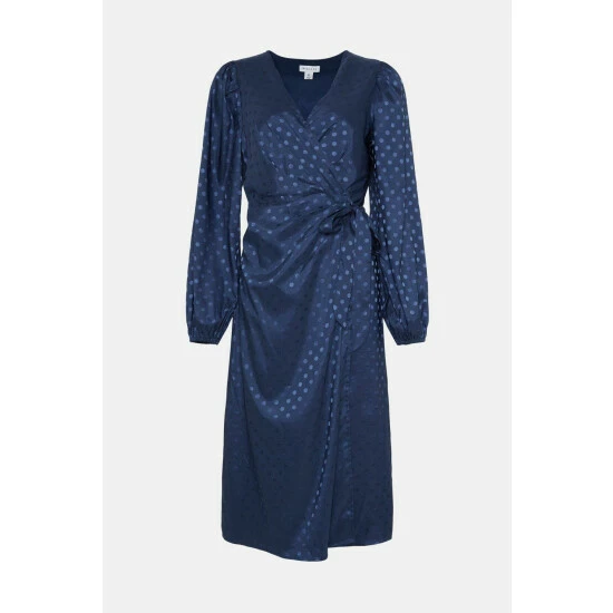 Jacquard Spot Wrap Midi Dress