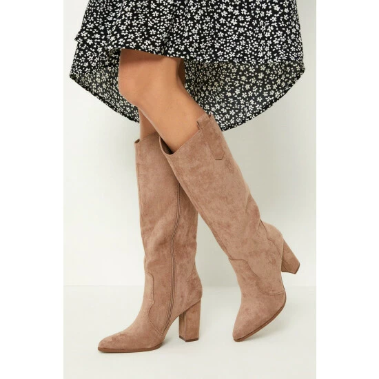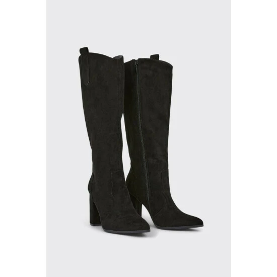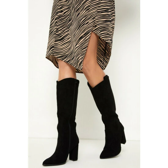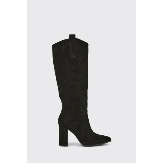 Take your wardrobe to new heights with our Kiwi Block Heeled Long Boot. Featuring a soft faux suede upper, pointed toe, resting on a high block heel. Upper: Synthetic, Lining: Synthetic, Outsole: Synthetic