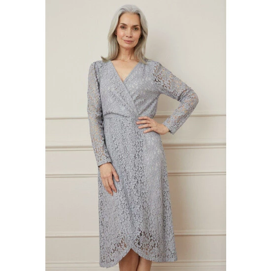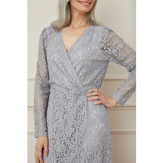 Lace Gathered Wrap Midi Dress