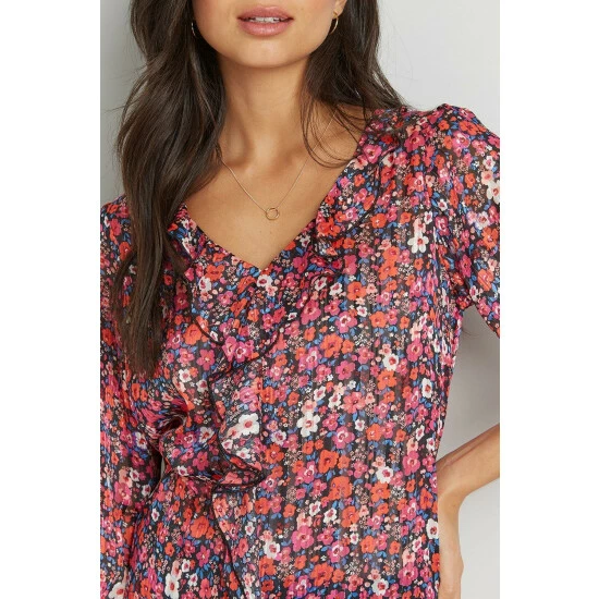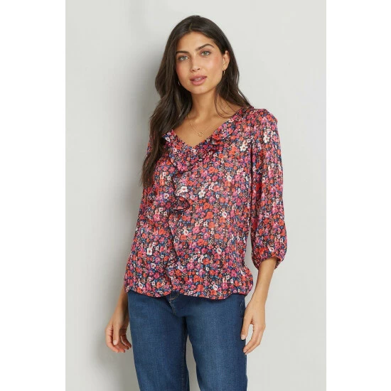 Complete the look with our new season tops. From casual camis to smart office tops to glam ruffled evening styles, we’ve got you covered for whatever you have in the diary. Make a style statement with puff sleeves and bold prints, or keep things classic with a chic cami or ruffles top. Intricate embellishments and fine prints are set to bring your everyday wardrobe to life, whilst a variety of fits are designed to flatter.Style: Metallic Ditsy Ruffle Front BlouseLength: Approx. 60cmFit: RegularIdeal for: OccasionDesign: Ruffle