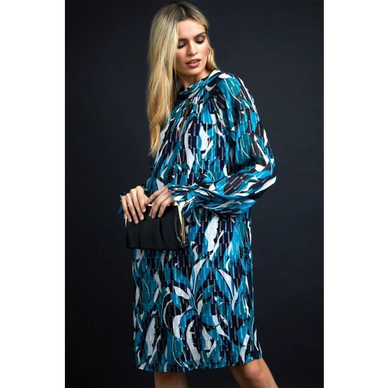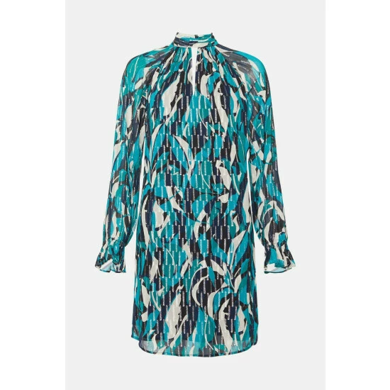Part of W, a carefully curated collection of luxe, trend-lead pieces. W is an elevated selection of essential styles. The metallic print elevates this classic mini dress. Blouson sleeves and a tied back keep this look super chic, perfect for a dressed-up look.Style: Metallic Printed Tie Back Shift DressLength: Approx. 97cmFit: RegularIdeal for: OccasionDesign: Metallic
