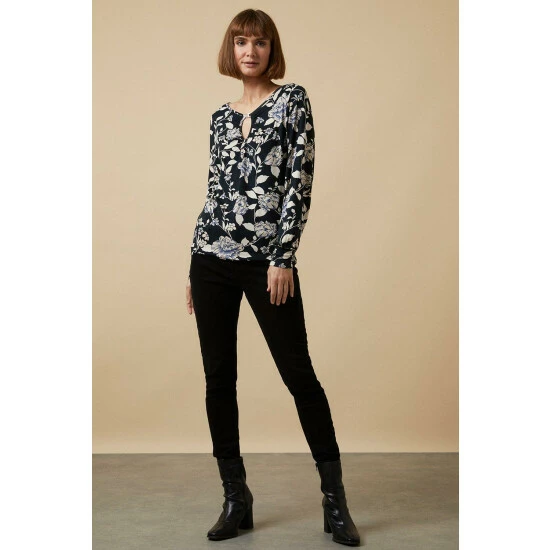 Complete the look with our new season tops. From casual camis to smart office tops to glam ruffled evening styles, we’ve got you covered for whatever you have in the diary. Make a style statement with puff sleeves and bold prints, or keep things classic with a chic cami or ruffles top. Intricate embellishments and fine prints are set to bring your everyday wardrobe to life, whilst a variety of fits are designed to flatter.Style: Mono Floral Jersey Keyhole TopIdeal for: Daywear