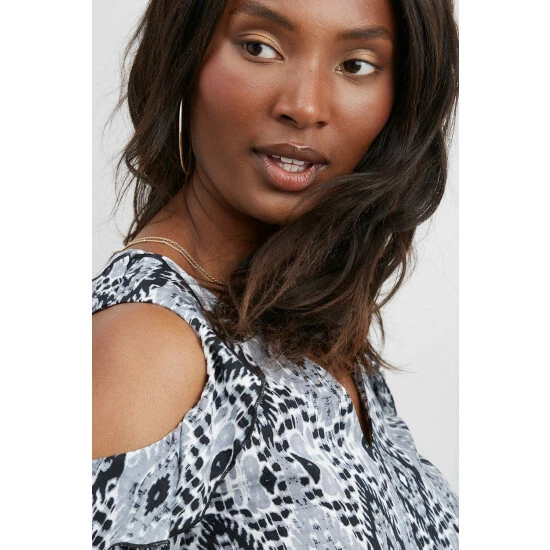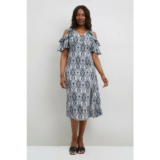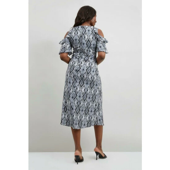 Mono Printed Cold Shoulder Dress