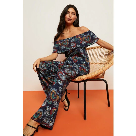 The one-and-done outfits we can’t get enough of. From elegant occasionwear to laid-back everyday designs, our new season jumpsuits have you covered for every occasion.Style: Navy Butterfly Jersey Bardot JumpsuitLength: Approx. 134cmFit: RegularIdeal for: DaywearDesign: All Over Print