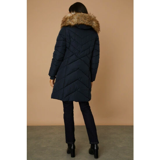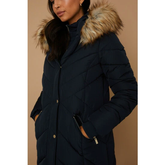 Main: 100% Polyester, Lining: 100% Polyester, Wadding: 100% Polyester, Fur Pile: 40% Acryrlic, 33% Modacyrlilic, 27% Polyester, Fur Backing, 100% Polyester, Excluding Trim. Model wears size 10.