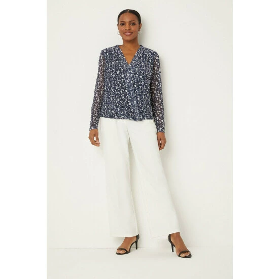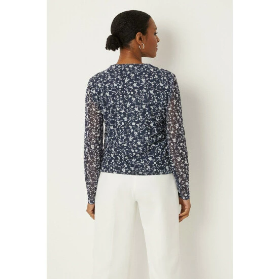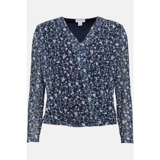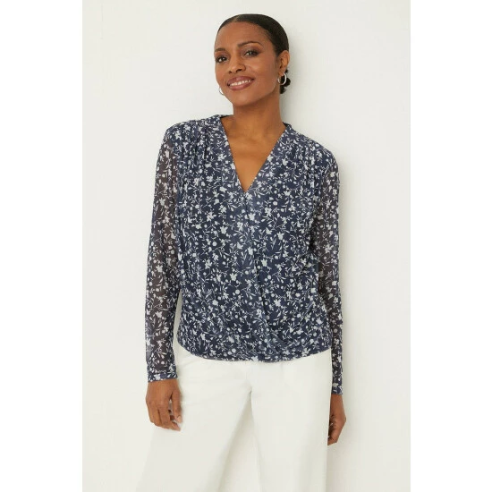 Navy Floral Mesh Wrap Top