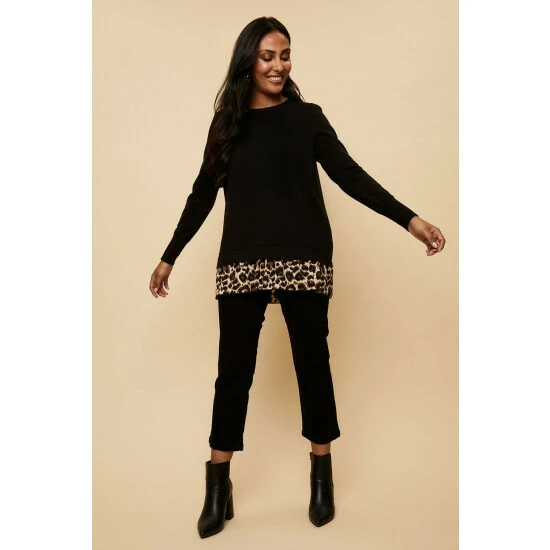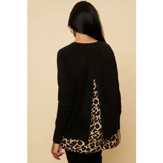 Petite Animal Woven Contrast Back Jumper