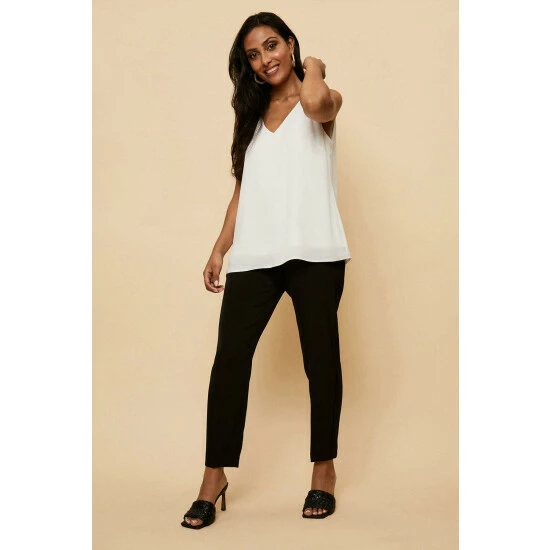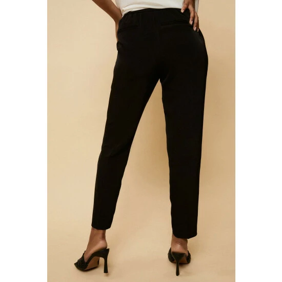 Refresh your wardrobe staples with new season trousers for every occasion. From chic wide leg designs to, to formal tapered suit trousers and versatile leggings. From work to weekend, these trousers have you covered.Style: Petite Black Pull On TrousersIdeal for: Daywear