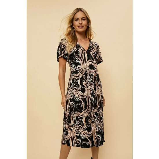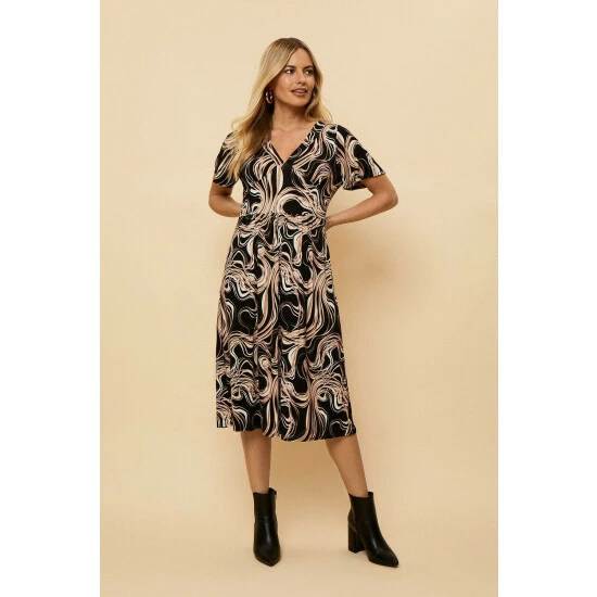 Petite Black Swirl Angel Sleeve Jersey Midi Dress