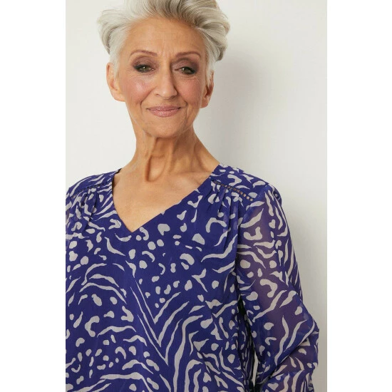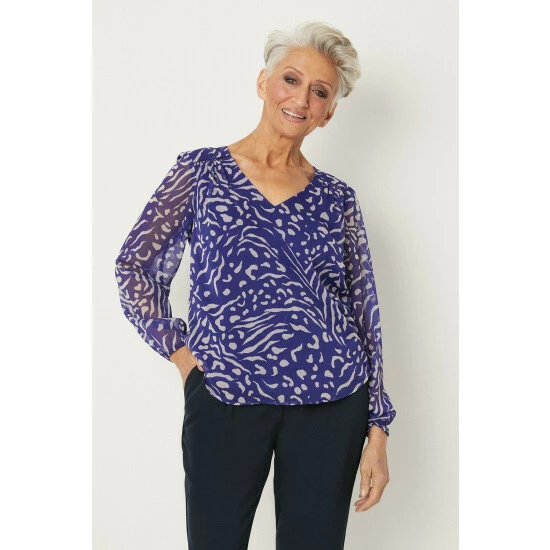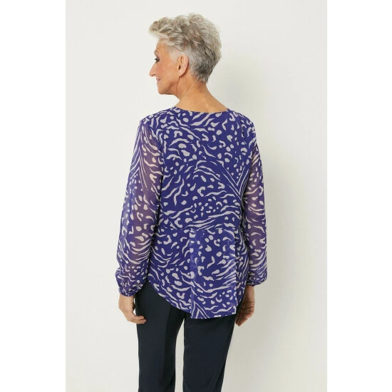 Petite Blue Animal Print Chiffon Blouse