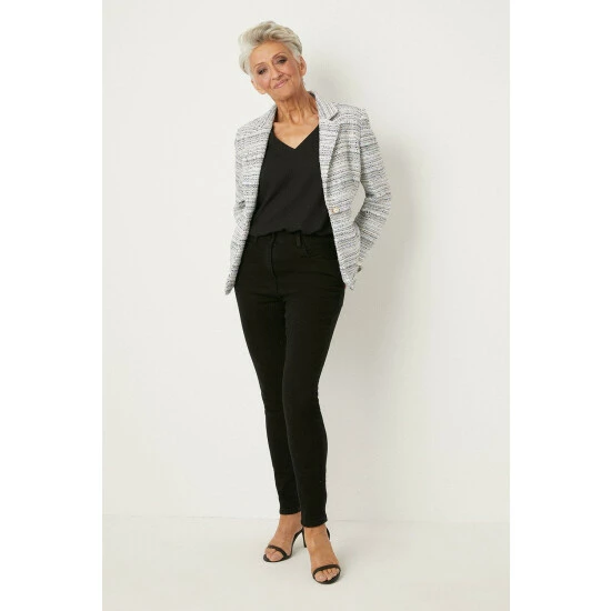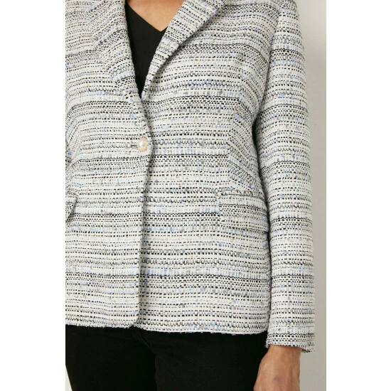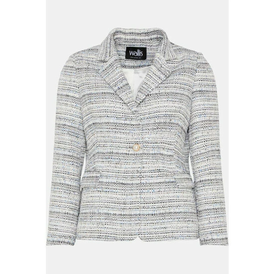 Petite Blue Single Breasted Boucle Blazer