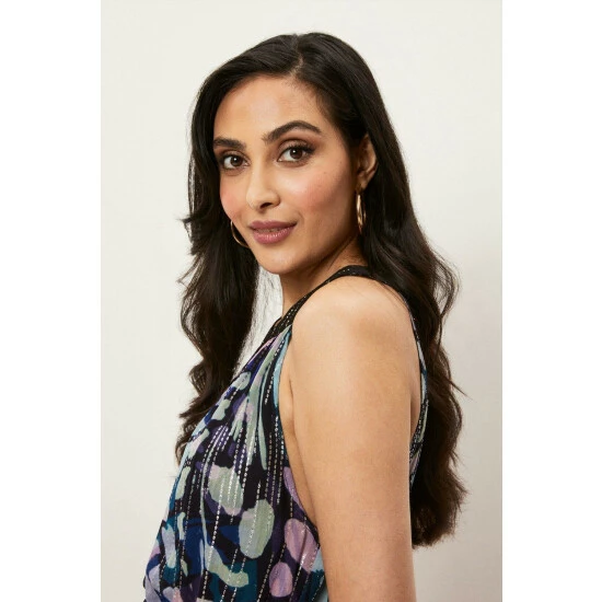 94% Viscose, 6% Metallised Fibre. Machine Washable. Model Wears UK Size 10.