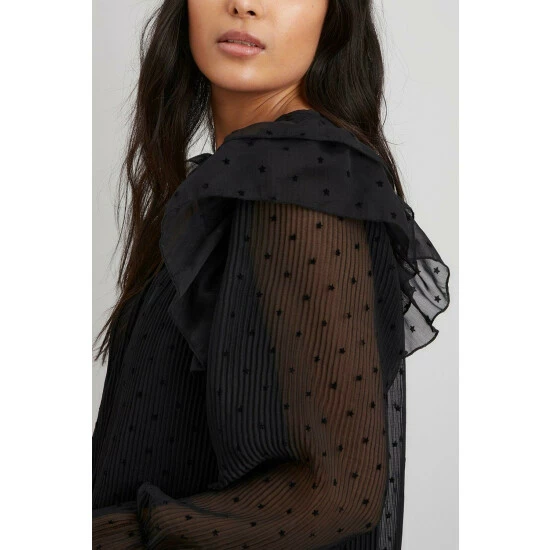 Complete the look with our new season tops. From casual fits to smart office tops to glam evening styles, we’ve got you covered for whatever you have in the diary. Make a style statement with puff sleeves and bold prints, or keep things classic with a chic cami or ruffles top. Intricate embellishments and fine prints are set to bring your everyday wardrobe to life, whilst a variety of fits are designed to flatter.Style: Petite Flocked Star Print Ruffle TopLength: Approx. 64cmFit: RegularIdeal for: OccasionDesign: Ruffle
