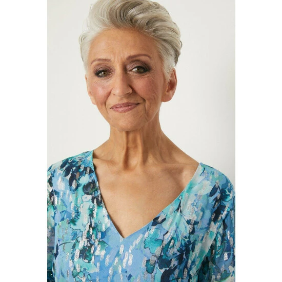 81% Viscose, 19% metallised fibre, Lining: 100% Polyester. Machine washable. Model wears size 10.