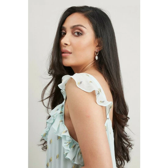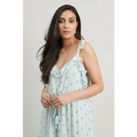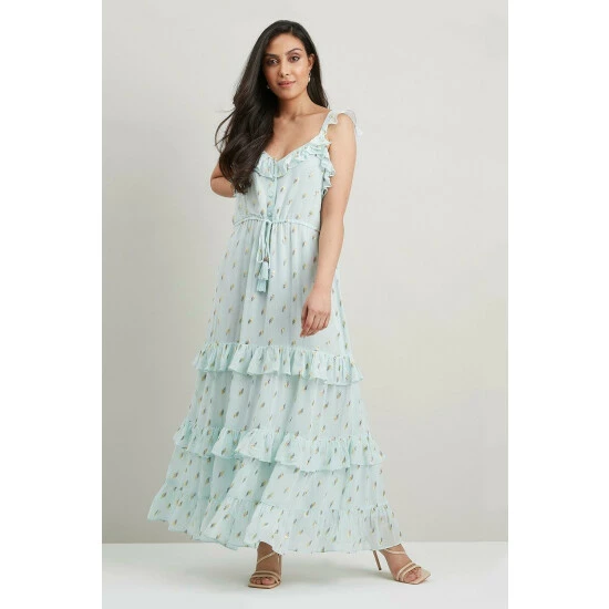 Just say dress. From sophisticated workwear styles to show stopping event-ready designs, our new season dresses have you covered for any and all occasions. Discover unique prints, elegant silhouettes and versatile styles. Whatever you’ve got in the diary, we’ve got the dress for it. Shop versatile Midi dresses, elegant Maxi dresses and everything in between.Style: Petite Metallic Dobby Ruffle Midi DressLength: Approx. 147cmFit: RegularIdeal for: OccasionDesign: Ruffle