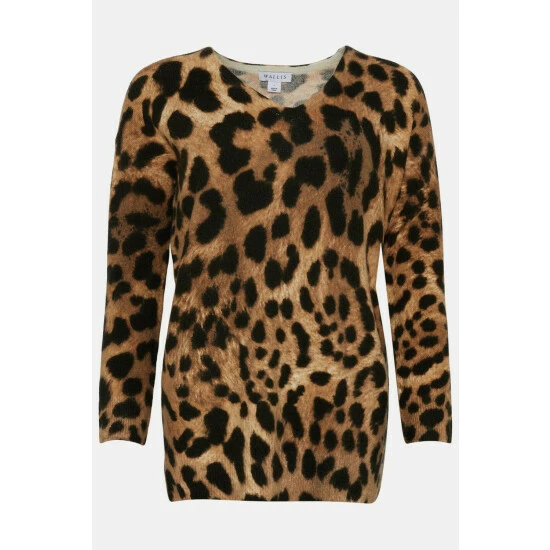 Petite Neutral Leopard Animal V Neck Jumper