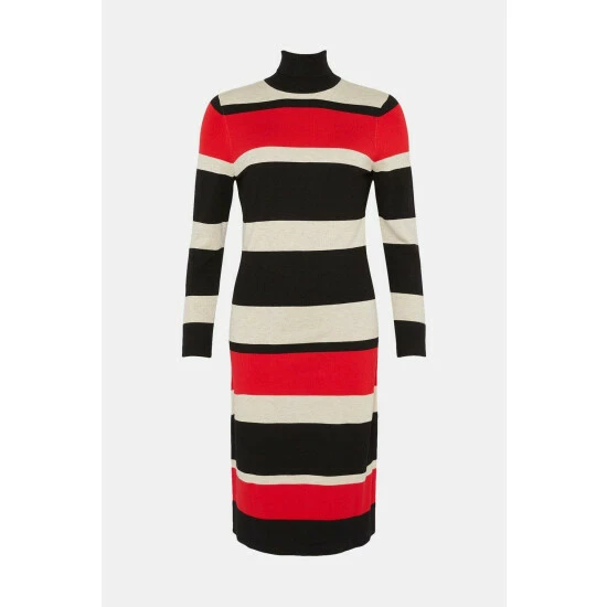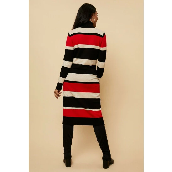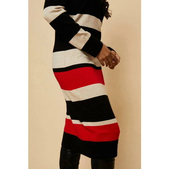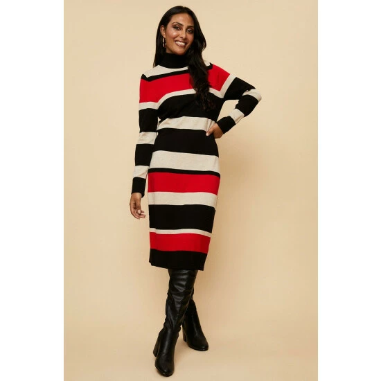 Petite Red Stripe Polo Neck Knitted Dress