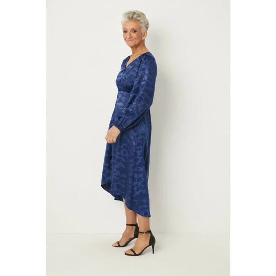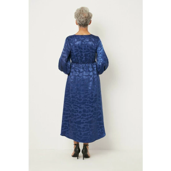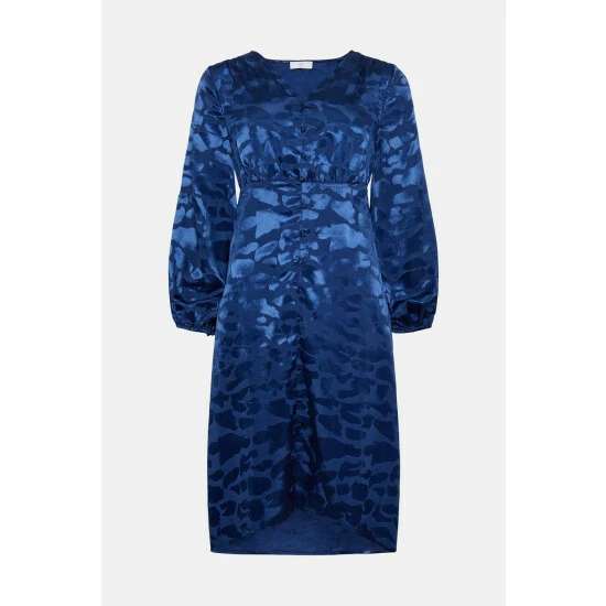 Petite Satin Viscose Jacquard Button Midi Dress