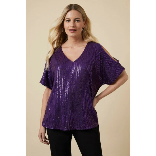 Complete the look with our new season tops. From casual camis to smart office tops to glam ruffled evening styles, we’ve got you covered for whatever you have in the diary. Make a style statement with puff sleeves and bold prints, or keep things classic with a chic cami or ruffles top. Intricate embellishments and fine prints are set to bring your everyday wardrobe to life, whilst a variety of fits are designed to flatter.Style: Petite Sequin Cold Shoulder TopIdeal for: Occasion