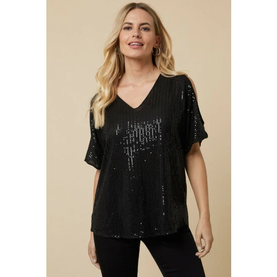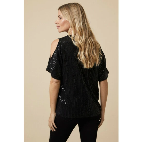 Complete the look with our new season tops. From casual camis to smart office tops to glam ruffled evening styles, we’ve got you covered for whatever you have in the diary. Make a style statement with puff sleeves and bold prints, or keep things classic with a chic cami or ruffles top. Intricate embellishments and fine prints are set to bring your everyday wardrobe to life, whilst a variety of fits are designed to flatter.Style: Petite Sequin Cold Shoulder TopIdeal for: Occasion