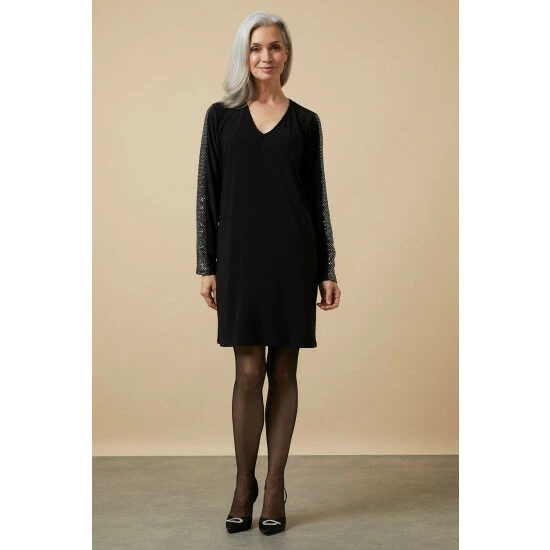 Petite Sequin Insert V Neck Shift Dress