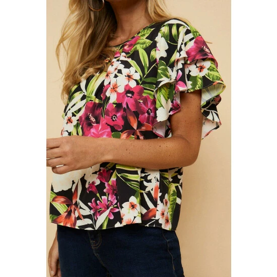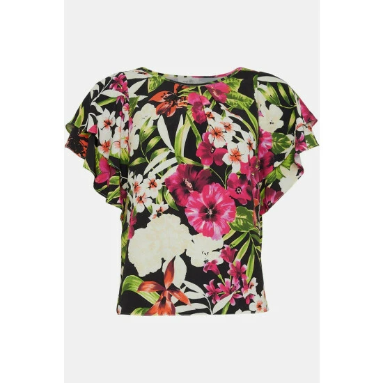Complete the look with our new season tops. From casual camis to smart office tops to glam ruffled evening styles, we’ve got you covered for whatever you have in the diary. Make a style statement with puff sleeves and bold prints, or keep things classic with a chic cami or ruffles top. Intricate embellishments and fine prints are set to bring your everyday wardrobe to life, whilst a variety of fits are designed to flatter.Style: Petite Tropical Ruffle Sleeve Shell TopLength: Approx. 58cmFit: RegularIdeal for: DaywearDesign: Ruffle