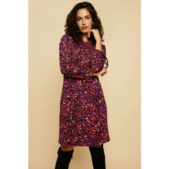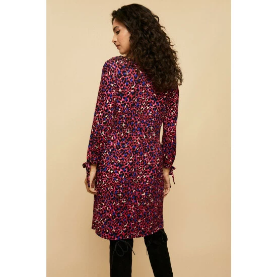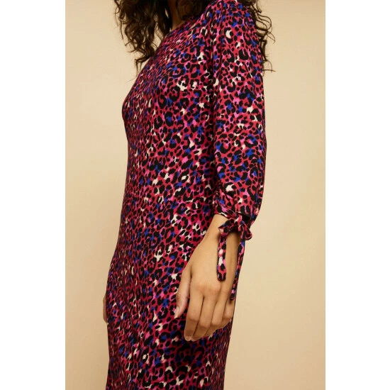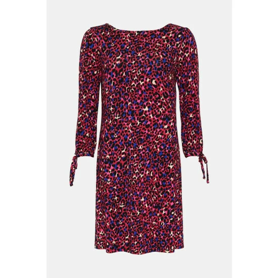 Pink Leopard Tie Cuff Jersey Shift Dress